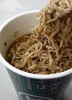 特徴は細い麺である。このため、一般のカップラーメンは3分かかるが、これはお湯をいれて、2分でOKなのがウリ。