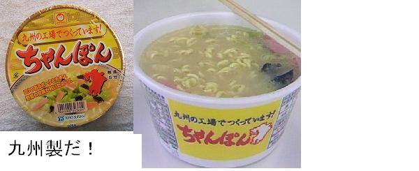 九州をアピールして購入意欲をかき立てようとする魂胆がみえる。これはマルちゃんの鳥栖にある工場で作ってます。