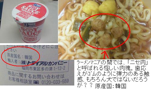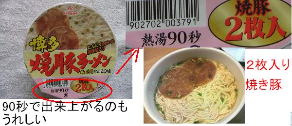さて、工場の場所に加え、ねだんも上のマルちゃんと同じ¥89とおなじあたり(ただし価格はトライアル価格です)、ライバル