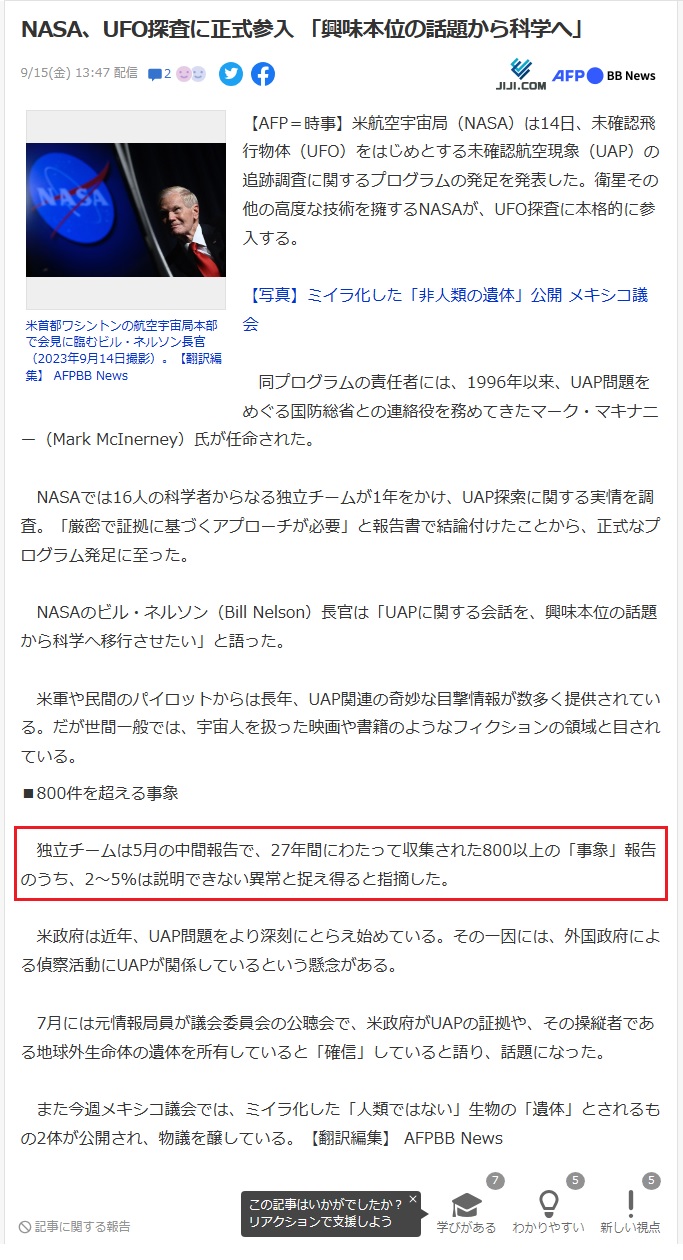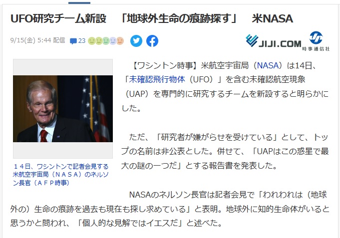がUFO探査に正式参入するとのニュースが飛び込んできました。